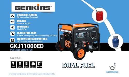 Specification: 11000 Watt Dual Fuel Portable Generator Home Back Up, Emergercy, RV & Camping Electric Start Gas or Propane