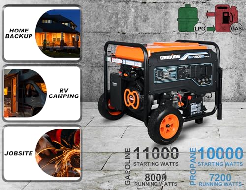 11000 Watt Dual Fuel Portable Generator Home Back Up, Emergercy, RV & Camping Electric Start Gas or Propane