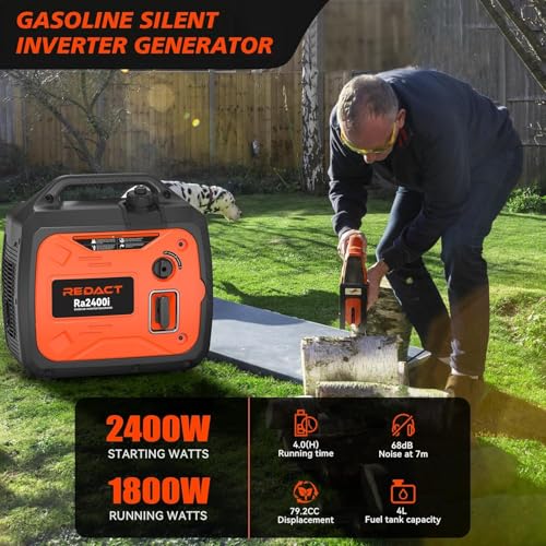 Power You Can Count On : Need serious juice? This gas generator pumps out 2400W peak, 1800W running. Hook up two units and boom—3200W power for tools, camping, or keeping the lighting on at home.