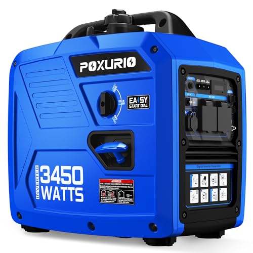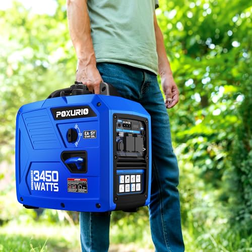 Specification: 3450-Watt Portable Inverter Generator for Camping & RV, 1.6 Gallon Gas Tank for 8.3 Hours Use, 120V Gas Powered Generator Ultra-Quiet Operation, EPA Compliant, Blue