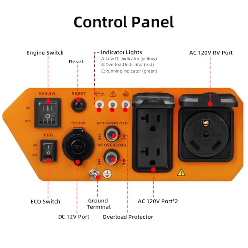 Specification: 5000-Watts Portable Inverter Generator, Gas Generator for Home Backup, 30A Outlet, RV Ready, ECO Mode, 60Lbs, EPA Compliment