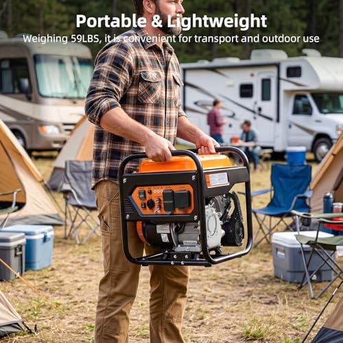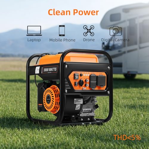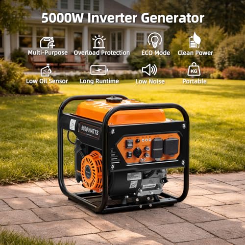 5000-Watts Portable Inverter Generator, Gas Generator for Home Backup, 30A Outlet, RV Ready, ECO Mode, 60Lbs, EPA Compliment