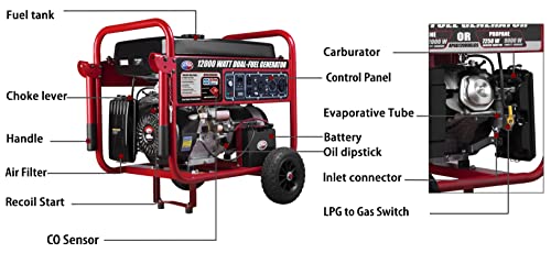Specification: All Power APGG12000-12,000-Watt Dual Fuel Generator Gasoline Propane JD Engine Electric Start Portable Wheel Kit