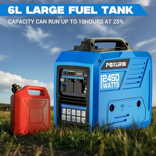 2450-Watt Inverter Generator for Home Use, 1.6Gallon Large Fuel Tank Up to 8.3 Hours Use, 120V Gas Powered Generator Super Quiet – EPA Compliant