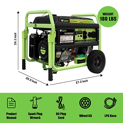 Specification: Green-Power America 10000 Watt Dual Fuel Portable Generator, Gas/Propane Powered, Electric Start, Home Backup & RV Ready