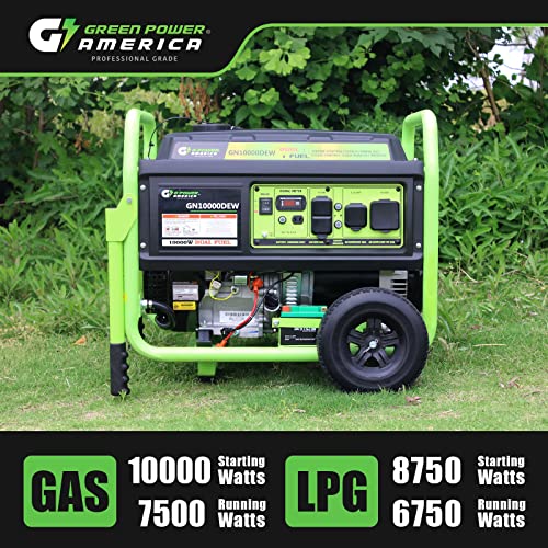 Green-Power America 10000 Watt Dual Fuel Portable Generator, Gas/Propane Powered, Electric Start, Home Backup & RV Ready