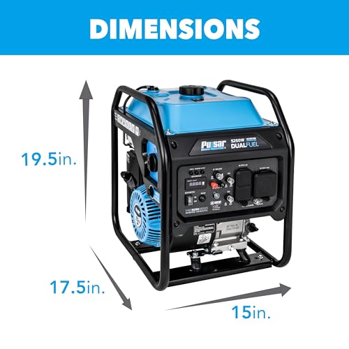 Specification: Pulsar PGX5250BiXCO 5250W Dual Fuel Inverter Generator – Gas & Propane, CO Sentry, RV Ready 30A Outlet, Digital Display, Portable Quiet Power for Home Backup, Camping & Jobsite