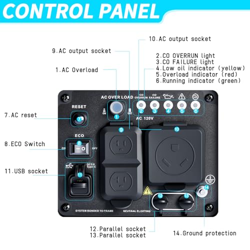 [Fuel-Efficient ECO Mode / Parallel Operation]-The ECO Smart Throttle automatically adjusts engine speed based on load demand, improving fuel efficiency while reducing noise for longer, quieter operation. Supports pairing two RAD3500i generators with a parallel kit to double your output power—ideal for RV air conditioners, induction cooktops, power tools, and other high-demand equipment. (Parallel kit sold separately.)