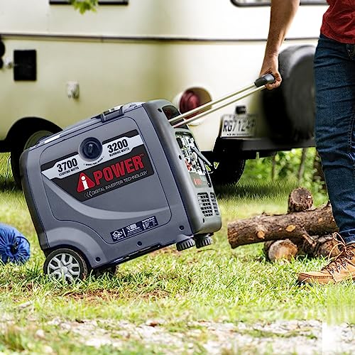 A-iPower Portable Inverter Generator, 3700W RV Ready, EPA Compliant, Portable with Telescopic Handle for Backup Home Use, Tailgating & Camping (AP3700i)