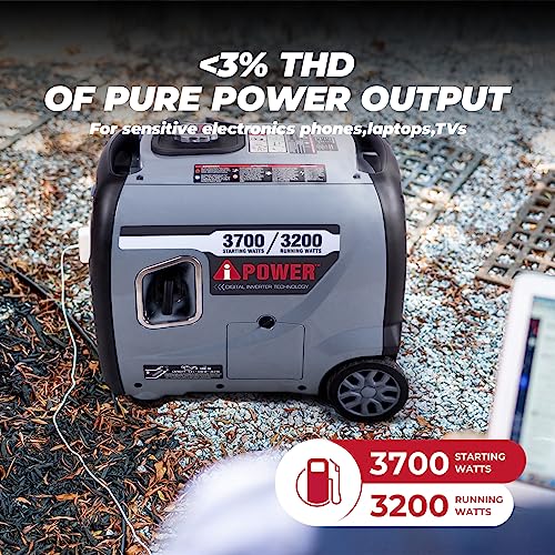 Specification: A-iPower Portable Inverter Generator, 3700W RV Ready, EPA Compliant, Portable with Telescopic Handle for Backup Home Use, Tailgating & Camping (AP3700i)