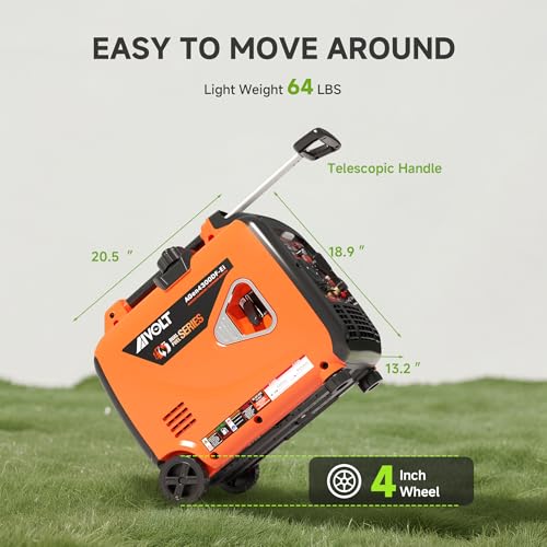 Lightweight Yet Mighty Power – Weighs only 64 lbs with built-in wheels and telescoping handle, gliding this surge 4300 watts generator smoothly over rough terrain so you can focus on adventure instead of heavy lifting.