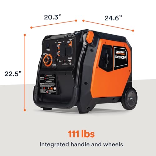 Specification: Generac 5,200-Watt Dual-Fuel Portable Inverter Generator – Gas and Propane Compatible – Quiet Operation – Clean, Stable Power – CA Compliant – Great for Home Backup, Camping, and RV Use