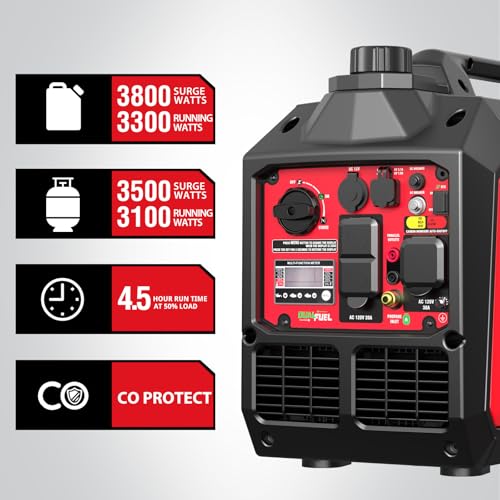 PowerSmart 3800-Watt Portable Inverter Generator with Dual Fuel, CO Protect, 30 amp for RV, Home Use and Emergency Backup