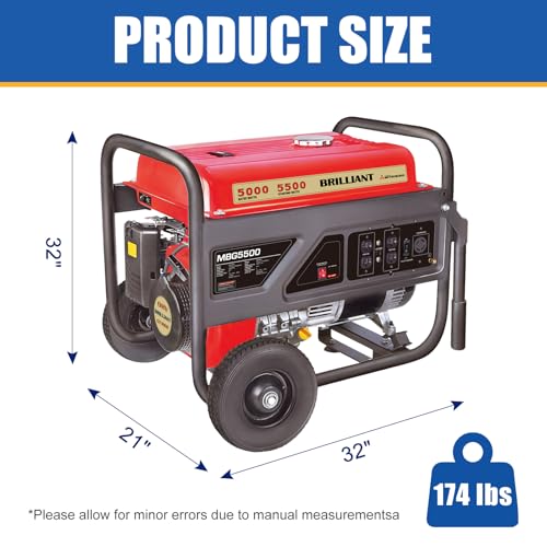[Powerful 5500W Output for Home]: Driven by the high-performance GT1000 OHV engine, this generator delivers 5,500W peak power and 5,000W rated output. It reliably supplies electricity for home backup power all over outages, supports construction sites, and can run more than one heavy-duty tools or household appliances concurrently.