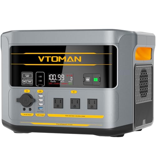 Specification: VTOMAN FlashSpeed 2400 Portable Power Station, 1408Wh LiFePO4 (LFP) Battery, Full Charge in 58 Min,2400W(Peak 3200W) Solar Generator for Home Backup Power, Camping & RVs(Solar Panel Optional)