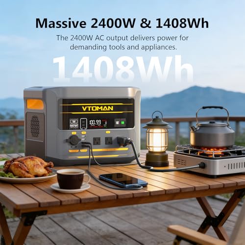 VTOMAN FlashSpeed 2400 Portable Power Station, 1408Wh LiFePO4 (LFP) Battery, Full Charge in 58 Min,2400W(Peak 3200W) Solar Generator for Home Backup Power, Camping & RVs(Solar Panel Optional)