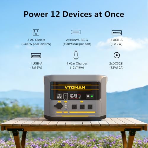 【2400W Output & 12 Ports】 Power 95% of home and outdoor devices with 2400W (3200W peak) AC,from refrigerators and microwaves to power tools. Charge 12 devices at once via 3 AC, 4 USB-A, 2 USB-C, and 3 DC ports.