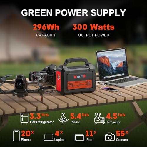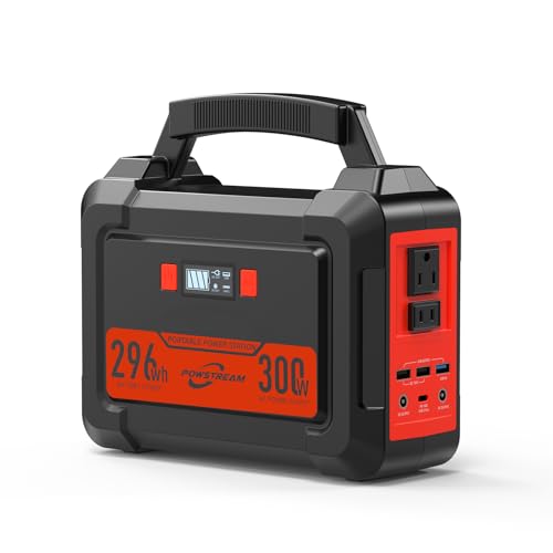 Specification: 300W Portable Power Station POWSTREAM Camping Outdoor Generator, 296Wh Lithium Ion Battery Power Supply with PD Fast Charging, 110V AC Output LED Flashlight for CPAP Outdoors RVs Emergency Blackout