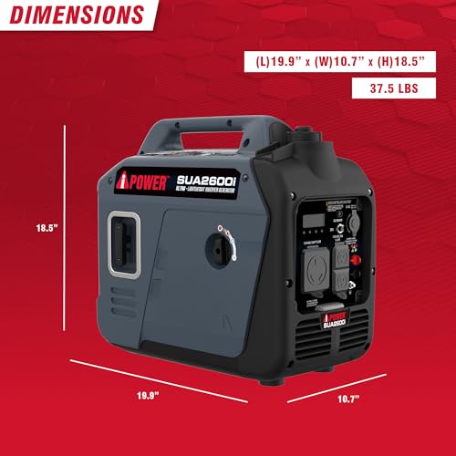 Specification: A-iPower Quiet Inverter Generator, 2600W RV Ready, EPA & CARB Compliant CO Sensor, Portable Ultra-Light Weight For Backup Home Use, Tailgating & Camping (SUA2600i)