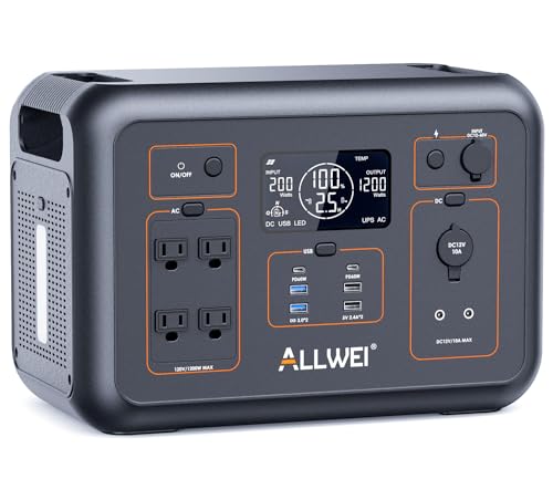 Specification: ALLWEI LiFePO4 Portable Power Station 1200W, 1008Wh Solar Generator with UPS Mode, 1.5Hrs Fast Charge, 4 AC Outlet(Surge 2400W), Power Battery Generator for CPAP Camping Outdoor Emergency