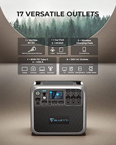 Specification: BLUETTI Portable Power Station AC200P, 2000Wh LiFePO4 Battery Backup w/ 6 2000W AC Outlets (4800W Peak), Solar Generator for Outdoor Camping, RV Travel, Home Use (Solar Panel Not Included)
