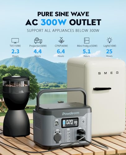 300W Portable Power Station, 296Wh Power Bank with AC Outlet, Solar Generator Laptop Charger, Battery Backup Power Supply for Camping, Outdoors, Home Emergency Outage