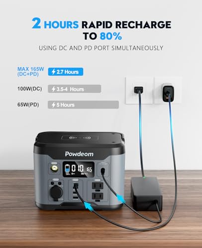 【5 RECHARGING WAYS】- Powdeom power bank with outlet can be recharged by a wall outlet, PD port, car charger or 60w solar panel, even wall outlet and PD port charging together. No matter whether you are outdoors camping, taking a trip, or at home resting, it can be charged and fully used, keeping you stay connected to unlimited energy.