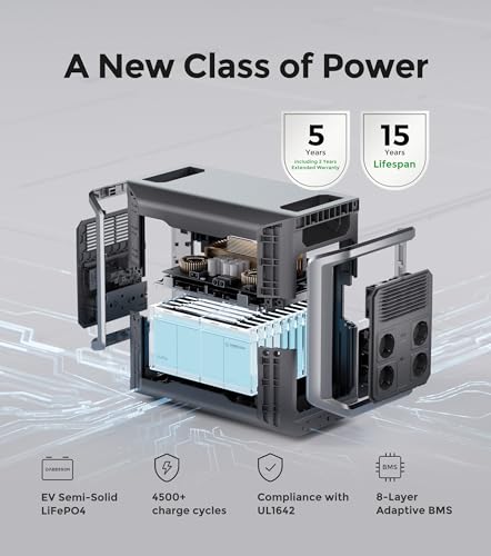 Good Cycle Life: DBS1700B extra battery is a reliable and safe backup power source with its LiFePO4 battery cells and BMS technology, it can retain 80% capacity after 4,500+ charge cycles(extra 500 with BMS system) that can power you for 15 years.