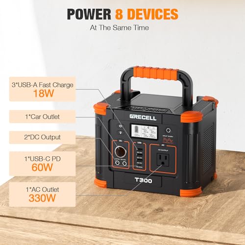 Specification: GRECELL Portable Power Station 330W Solar Generator Fast Charging Emergency Power Backup Battery for Home Outage RV/Van Road Trip Camping