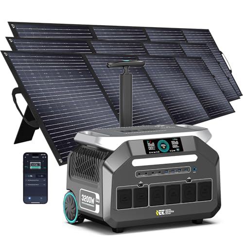 IEE 3200W Portable Power Station P3200 with 3x200W Solar Panel, 2048Wh Solar Generator, 1800W AC Charging, AC Outlets x 4, LiFePO4 Battery Power Station for Home Backup, Camping, RV, Emergency