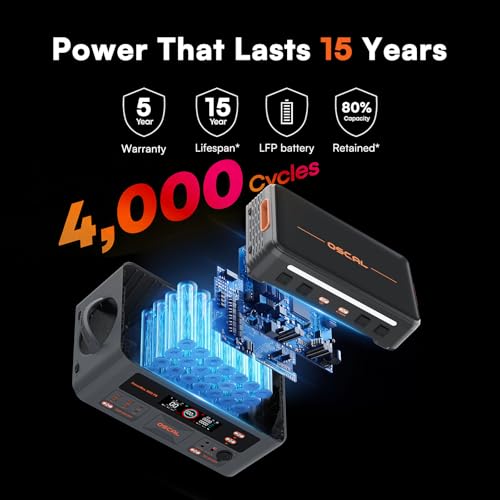 [0.01S UPS Protection&LFP Battery] The power station comes with a built-in UPS function that switches over to battery power in just 0.01 seconds when the power cuts out—more than 50% faster than most other backup power supplies. It uses tough, EV-grade LiFePO₄ batteries that last over 4,000 charge cycles and up to 10 years, so you can count on it for reliable long‑term use.
