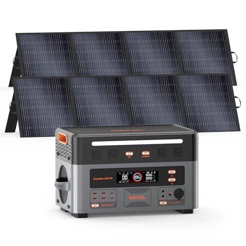 Specification: OSCAL PowerMax 3600 PE, 3600W Portable Power Station with 2x200W Solar Panels, 2016Wh Solar Generator 1500W AC Charging, LiFePO4 Battery Power Station for Home Camping RV Emergency