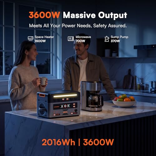 [2016Wh Capacity & 3600W High Output] This portable power station is designed for both power and portability. It weighs only 24kg—about 23% lighter and more compact than conventional products with the same capacity. Built-in wheels and a telescoping maintain allow easy transport wherever you want it. With 2016Wh of capacity, it’s ideal for multi-day camping, backup right through unexpected outages, or shared use in offices or community events. Powers most appliances under 3600W