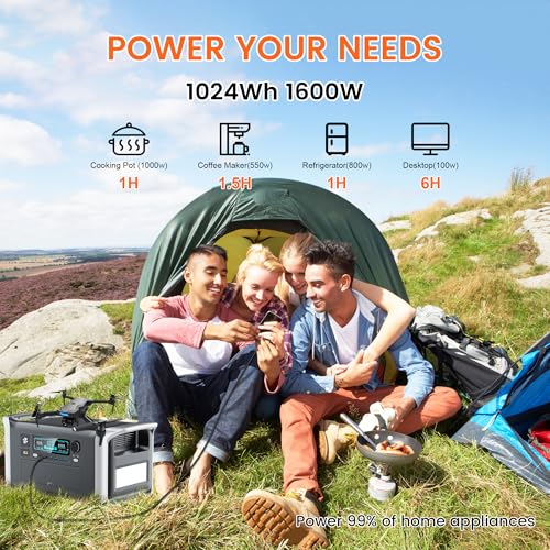 Portable Power Station 1600W – 1024Wh LiFePO4 Battery Solar Generator 1 Hr Fast Charge for Outdoor Camping RV Home Backup Power