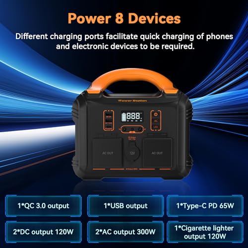 🚀【Stay Charged on the Go】Jeazans solar generator designed with 1*QC 3.0 output, 1*USB output, 1*Type-C PD 65W, 2*DC output 120W, 2*AC output 600W, 1*Cigarette lighter output 120W which can power up to 8 devices such as drone, tablet, phones, laptop, camera, CPAP, etc. Experience uninterrupted power for all your outdoor charging needs.