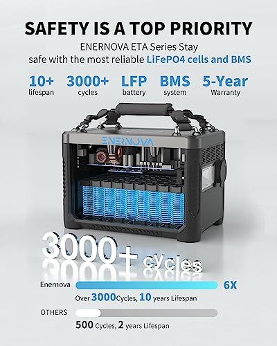 【Durable LFP Battery】ETA utilizes advanced LiFePO4 battery technology, providing a lifespan that is 6 times longer than conventional lithium batteries, allowing for approximately 3000 cycles of repeated charging and discharging. Even with daily use, it can last for over 10 years.