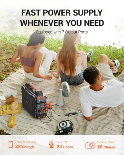 More than one Power Supply Options: Equipped with 7 outlets, this 300 watt power station offers More than one charging ports, including AC, USB-C, and PD60W fast charging, making it ideal for more than a few devices such as CPAP machines or portable electronics. The portable power bank includes a clear LCD screen, giving you real-time updates on your battery and power usage.