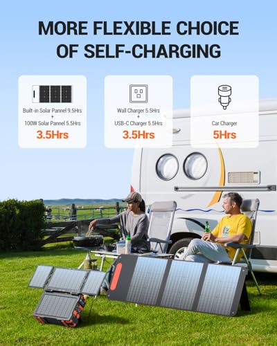 Versatile Energy Storage: This portable generator can be recharged in multiple ways: via AC adapter, car outlet, built-in 30W solar panel, or external solar panels. With these versatile combinations, you can recharge the portable inverter generator in as little as 3.5 hours, ensuring a reliable power source wherever you go.