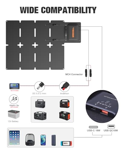FITS ALL YOUR NEED – Our 80W Foldable solar panel designed with 3 output ports: 2*USB QC3.0 ( 5V/3A, 9V/2A,12V/1.5A Max), 1* powerful charging port. The USB ports can quickly charge almost all 5V devices, suitable for charging your smartphone, ipad,GPS,USB fan, camera,tablets, speakers or other USB devices. 2-in-1 connector is compatible with most solar generators/portable power stations on the market. It can charge 3 devices at the same time. Ideally meets your almost outdoor charging needs.