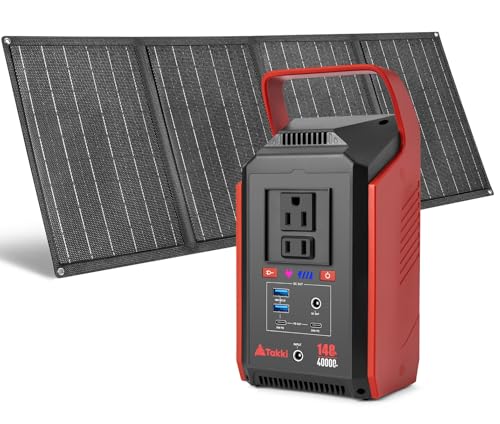 Specification: Takki Solar Generator 148Wh with 40W Solar Panel Included 300W Peak Portable Power Station Camping Power Bank with 110V AC Outlet for Home Camping Emergency Hurricane