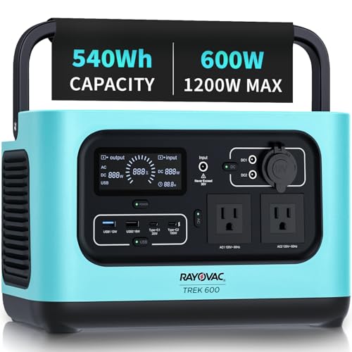 Rayovac Portable Power Station Trek 600, 540Wh, Safety Assured with UL, FCC, CE certifications, Ideal Solar Generator for Outdoor Camping Essentials, Road Trip, Off Grid, Outage, Home Battery Backup