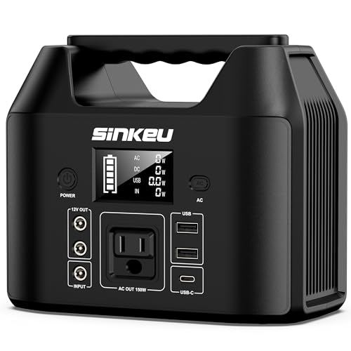 Up to 10 Years Battery Lifespan: The SinKeu E150 122.8Wh portable power station is built in LiFePO4 batteries with ultra-durable electronics,this upgrade ensures the power station’s longevity,more safe,stable,quiet and longer battery life; 110V/150W AC outlet provides a lot of power and is capable of running your smaller appliances like laptop,phones, earphone,taplet,small CPAP or mini fridge(Modified sine wave)