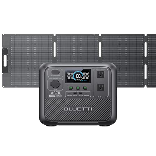 BLUETTI Portable Power Station AC70 with 200W Solar Panel, 768Wh Solar Generator with 2 1000W (Power Lifting 2000W) AC Outlets, 100W Type-C, 0-80% in 45 Min, LiFePO4 Backup Power for Camping, Travel
