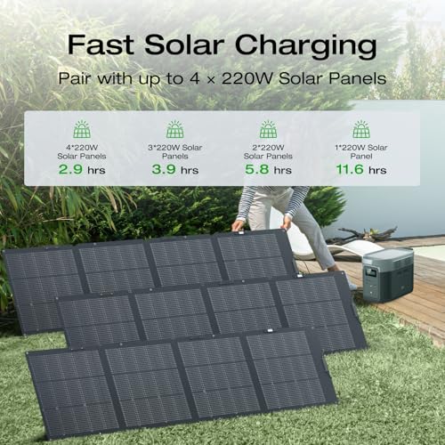 EF ECOFLOW Solar Generator DELTA 2 Max 2048Wh with 2x220W Solar Panel, LFP Battery Portable Power Station, Up to 3400W AC Output, AC + Solar Fast Dual Charging Full Charge in 1 Hr For Camping RV