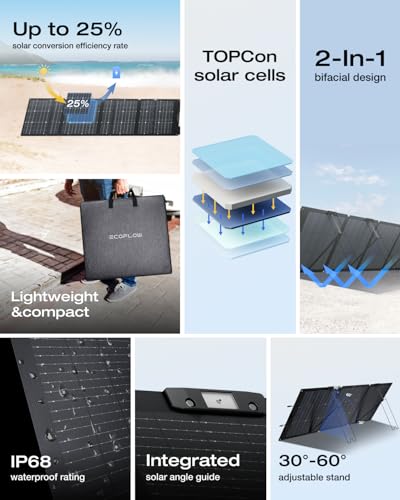 Clean, Green Charging. With up to 500W of solar panel input, DELTA 2 is a solar generator that can be charged while camping, on an RV trip or off-grid. Includes a 220W Bifacial solar panel to capture up to 25% more energy.