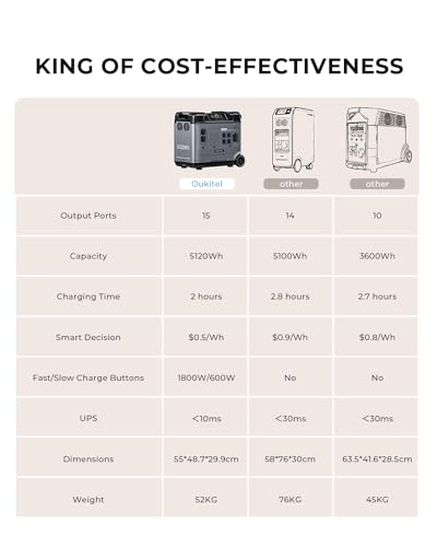[Smaller and Lighter] about 25 kg lighter and 39% smaller than a conventional power station with 5100wh capacity, easy to move whth a high-quality drawbar and 2 movable wheels. OUKITEL lifepo4 power station can last a week without electricity for emergency use.