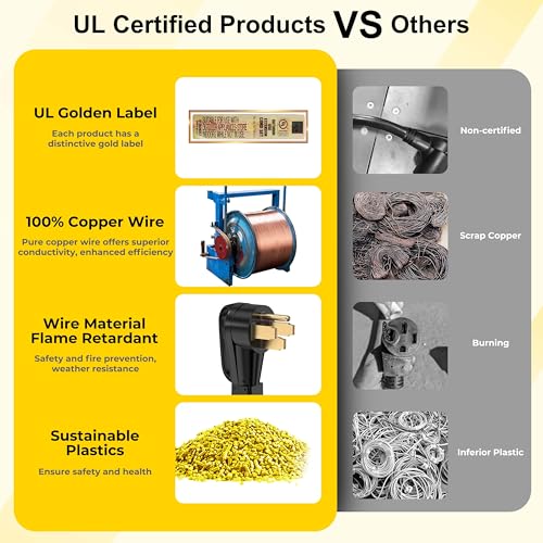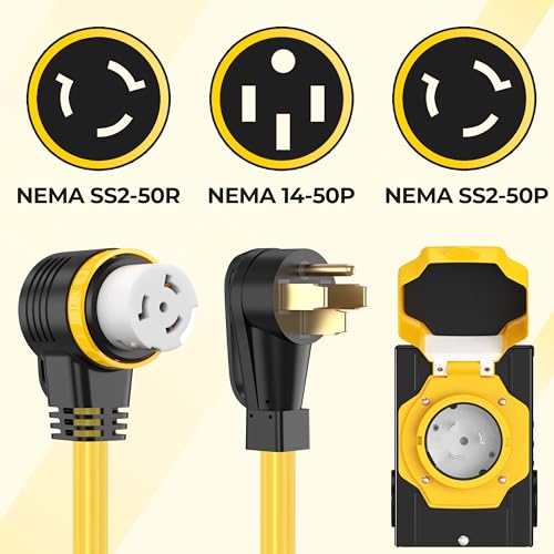 Specification: UL Certification, Heavy Duty STW AWG 6/3 + 8/1 Wire, 50 Amp NEMA 14-50P Male to NEMA SS2-50R Female, Rated: 125/250 volt, 6250/12500 watt