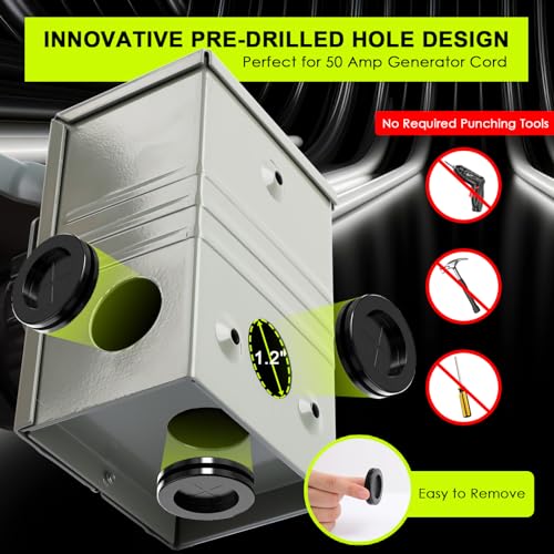 Unmatched Performance: 50 amp generator power inlet box has been perfectly upgraded. It is equipped with 4 large holes, making it easy to remove knockouts without the need for any drilling tools. The 50 amp generator cord is designed with all-copper wires to ensure exceptional conductivity. The high-density PVC jacket offers amplified durability, along with waterproofing and UV resistance. As an ETL Listed product, it provides complete peace of mind