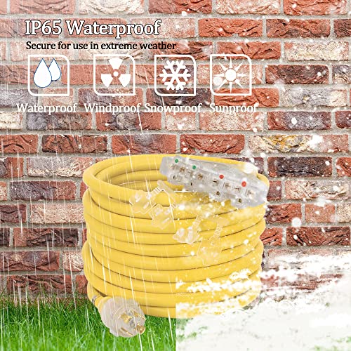Specification: S7 25 Feet Heavy Duty Generator Adaptor Extension Cord,Locking Cord,NEMA L14-30P/Four 5-20R, Generator Power Cord