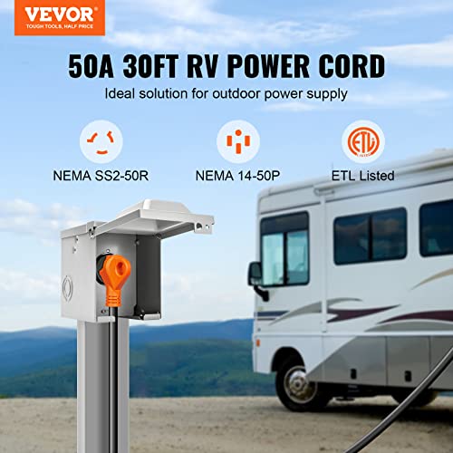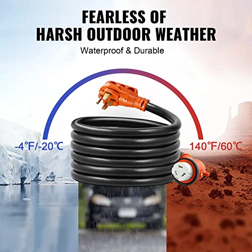 Specification: VEVOR 30 Feet RV Power Cord, 50 Amp, Heavy Duty STW 6/3 + 8/1 Generator Cord, NEMA 14-50P Male NEMA SS2-50R Female Plug, with LED Indicator Handle 15A Adapter, for RVs, ETL Listed